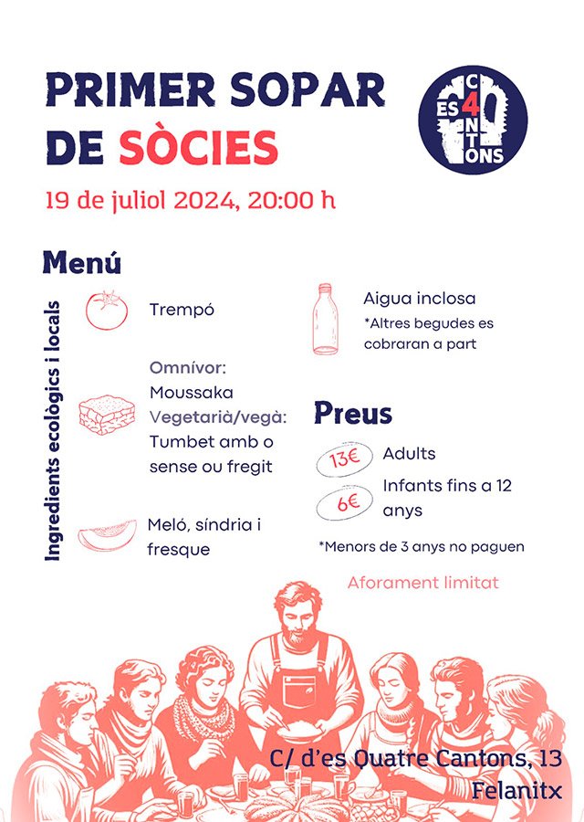 Primer sopar popular de sòcies al local.
